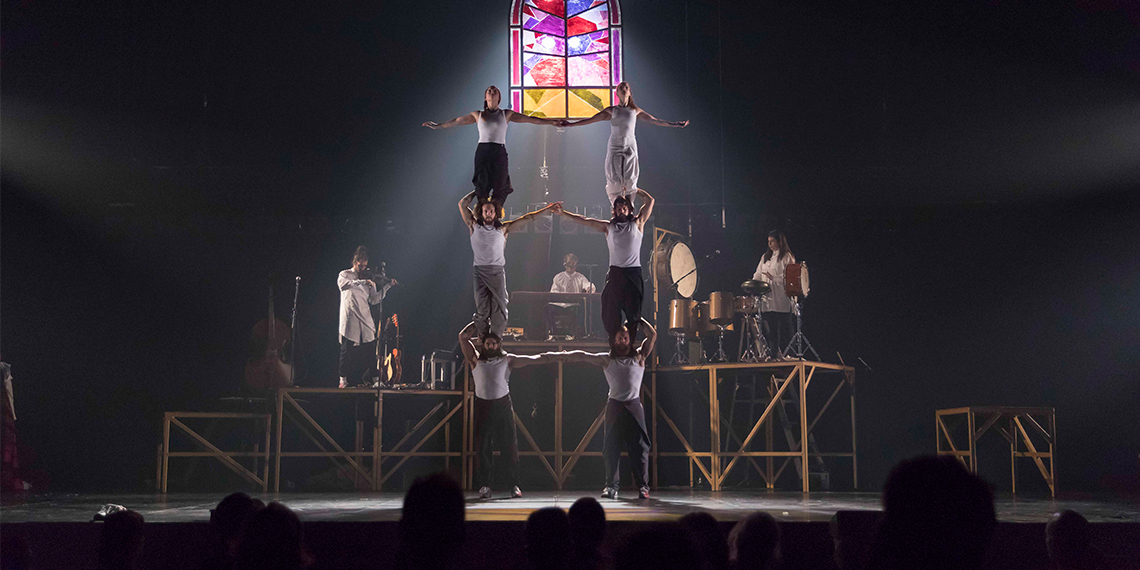They embark on an anarchic and poetic 'way of the cross', a lively musical circus where the organ takes a riff on the traditional & the acrobatics turn the church pews upside down.