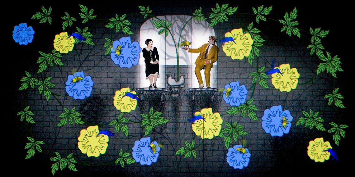 In their production the British theatre group 1927 and Barrie Kosky find powerful, evocative images for people and situations in this most-performed and yet so enigmatic opera – and despite the immense profundity of the work always retain a (typically British) tongue-in-cheek humour. Billows of smoke that form into images – elephants splashing in cocktail glasses – flying flutes, little dancing bells … nothing is impossible in this unique blend of German expressionism and British humour, of Weimar Republic cabaret and music hall, of animation and live performance.